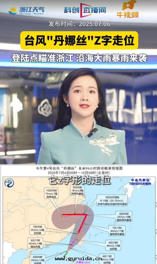 今年第(dì) 4 号(hào)台(tái)風(fēng) “丹娜丝(sī)” 来(lái)勢洶洶,已于(yú) 7 月(yuè) 7 日(rì)淩晨 0 點(diǎn)前(qián)後(hòu)以(yǐ)台(tái)風(fēng)級(13 級,40 米(mǐ) / 秒(miǎo))登陆台(tái)湾嘉義縣(xiàn)沿海(hǎi),随後(hòu)強(qiáng)度(dù)逐漸減弱(ruò)。截至(zhì) 7 日(rì)早(zǎo)晨 5 點(diǎn)鐘(zhōng),其(qí)中心(xīn)位(wèi)于(yú)浙閩交界南(nán)偏東(dōng)方約 235 公(gōng)里(lǐ)的(de)海(hǎi)面上(shàng),正(zhèng)以(yǐ)每小时(shí) 15-20 公(gōng)里(lǐ)的(de)速度(dù)向北(běi)偏東(dōng)方向移動(dòng),預计 8 日(rì)早(zǎo)晨起轉(zhuǎn)向西(xī)偏南(nán),逐漸向浙江台(tái)州至(zhì)福建福州一(yī)带(dài)沿海(hǎi)靠近(jìn),将于(yú) 8 日(rì)下(xià)午到(dào)夜(yè)間(jiān)在(zài)上(shàng)述沿海(hǎi)二(èr)次(cì)登陆,登陆时(shí)強(qiáng)度(dù)为(wèi)热带(dài)風(fēng)暴級(8-9 級,18-23 米(mǐ) / 秒(miǎo))。