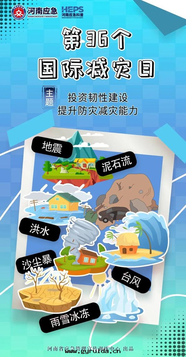 今年的(de) 10 月(yuè) 13 日(rì)是(shì)第(dì) 36 个(gè)國(guó)際減災日(rì),今年的(de)主(zhǔ)題(tí)是(shì) “投資韌性(xìng)建設,提(tí)升(shēng)防災減災能(néng)力”。我(wǒ)们(men)無法(fǎ)預測災難何时(shí)發(fà)生(shēng),但可(kě)以(yǐ)提(tí)前(qián)學(xué)習防災減災知識,增強(qiáng)應(yìng)对(duì)災害的(de)能(néng)力,为(wèi)自(zì)己和(hé)家(jiā)人(rén)的(de)安(ān)全(quán)多(duō)上(shàng)一(yī)道(dào) “保險”。