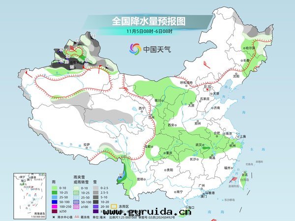 具體(tǐ)来(lái)看(kàn),中央气(qì)象(xiàng)台(tái)預计,今天(tiān)新(xīn)疆北(běi)部(bù)、青(qīng)海(hǎi)中西(xī)部(bù)、黑(hēi)龍江北(běi)部(bù)和(hé)東(dōng)部(bù)、西(xī)藏東(dōng)部(bù)和(hé)南(nán)部(bù)等地(dì)部(bù)分(fēn)地(dì)區(qū)有(yǒu)小到(dào)中雪(xuě)或(huò)雨(yǔ)夾雪(xuě),其(qí)中,新(xīn)疆阿勒泰地(dì)區(qū)、沿天(tiān)山(shān)地(dì)區(qū)和(hé)伊犁河(hé)谷(gǔ)等地(dì)部(bù)分(fēn)地(dì)區(qū)有(yǒu)大(dà)到(dào)暴雪(xuě),局地(dì)大(dà)暴雪(xuě),新(xīn)增積雪(xuě) 2~10 厘(lí)米(mǐ),局地(dì) 20~30 厘(lí)米(mǐ)。甘肅東(dōng)部(bù)、甯夏、陝西(xī)大(dà)部(bù)、內(nèi)蒙古西(xī)部(bù)、黑(hēi)龍江南(nán)部(bù)、吉林(lín)東(dōng)部(bù)、山(shān)西(xī)北(běi)部(bù)、河(hé)南(nán)南(nán)部(bù)、江淮西(xī)部(bù)、江漢、江南(nán)北(běi)部(bù)、雲(yún)南(nán)西(xī)部(bù)、海(hǎi)南(nán)島(dǎo)等地(dì)部(bù)分(fēn)地(dì)區(qū)有(yǒu)小到(dào)中雨(yǔ),其(qí)中,雲(yún)南(nán)西(xī)南(nán)部(bù)局地(dì)有(yǒu)大(dà)雨(yǔ)。