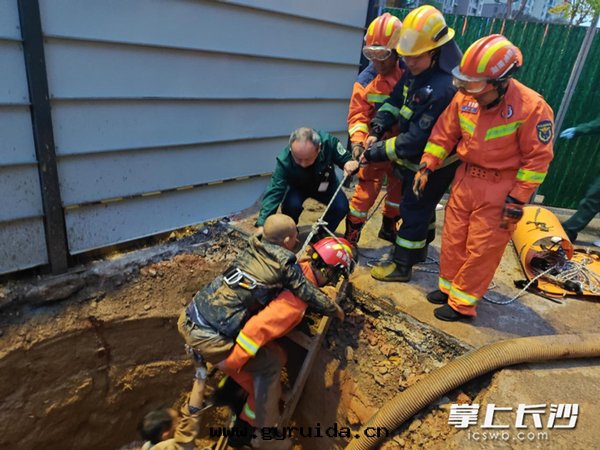 消防救援人(rén)員迅速在(zài)坑口固定(dìng)金(jīn)屬爬梯(tī)。一(yī)名(míng)救援人(rén)員系好(hǎo)安(ān)全(quán)绳(shéng)、扣緊腰带(dài),沿梯(tī)下(xià)至(zhì)積水(shuǐ)區(qū)域,为(wèi)工人(rén)固定(dìng)好(hǎo)安(ān)全(quán)腰带(dài),将其(qí)穩妥背在(zài)背上(shàng),上(shàng)方隊員則拉緊安(ān)全(quán)绳(shéng)全(quán)程保護。下(xià)午5时(shí)51分(fēn),經(jīng)过(guò)14分(fēn)鐘(zhōng)的(de)緊张(zhāng)施救,傷者(zhě)被(bèi)成功救出(chū),并移交現(xiàn)场(chǎng)120醫護人(rén)員送往醫院(yuàn)進(jìn)一(yī)步救治。