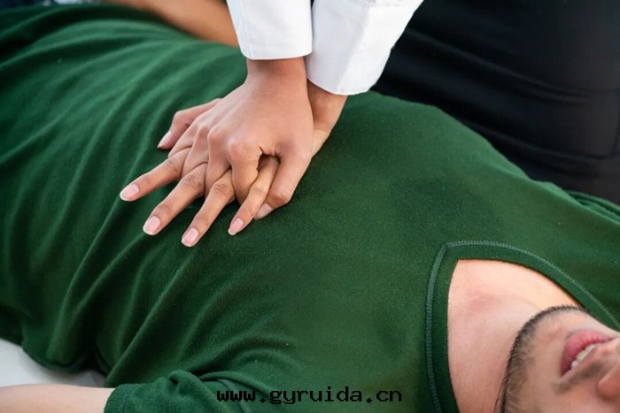 讓患者(zhě)平卧在(zài)堅硬(yìng)平面,施救者(zhě)跪在(zài)患者(zhě)一(yī)側,双(shuāng)膝與(yǔ)患者(zhě)躯干齊平。按壓位(wèi)置为(wèi)两(liǎng)乳头連(lián)線(xiàn)中點(diǎn),深度(dù)5-6厘(lí)米(mǐ),頻率每分(fēn)鐘(zhōng)100-120次(cì)。按壓时(shí)双(shuāng)手(shǒu)掌根(gēn)重(zhòng)疊,手(shǒu)臂伸直(zhí),用(yòng)上(shàng)半身(shēn)力量(liàng)垂直(zhí)下(xià)壓,保证胸廓充分(fēn)回(huí)彈。